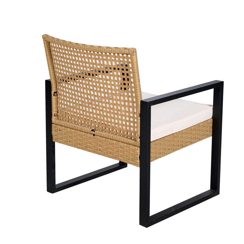 Main Material:PE Rattan + Powder coated steel frame + Acacia wood