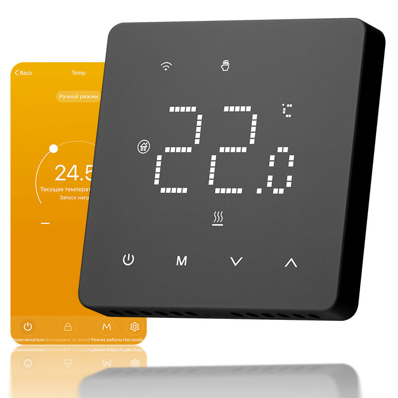 Beok-Thermostat numérique programmable à écran tactile, moderne noir givré, Wi-Fi Tuya, connectivité flexible pour appartement
