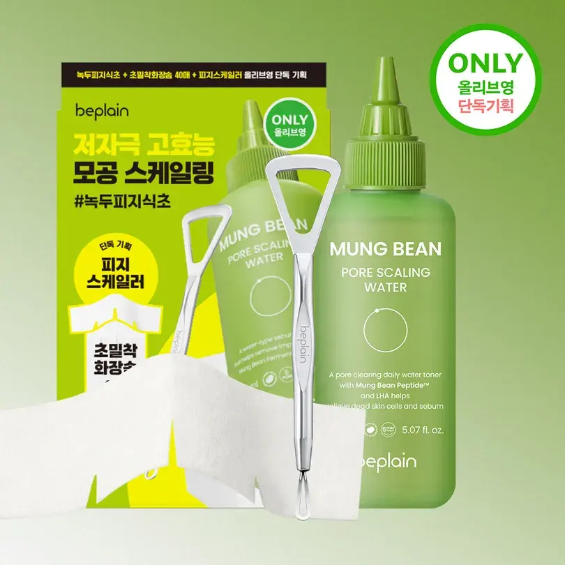 Beplain bonne qualité ensemble de soins de la peau 150ml haricot mungo pores détartrage eau 40P coton tampon sébum détartreur