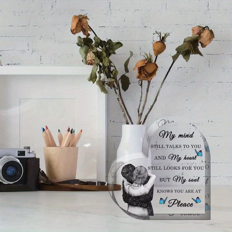 Cadeau de deuil Branche d'arbre de bricolage Décoration de bureau en acrylique Ailes d'ange Plaque de deuil en acrylique en forme de coeur