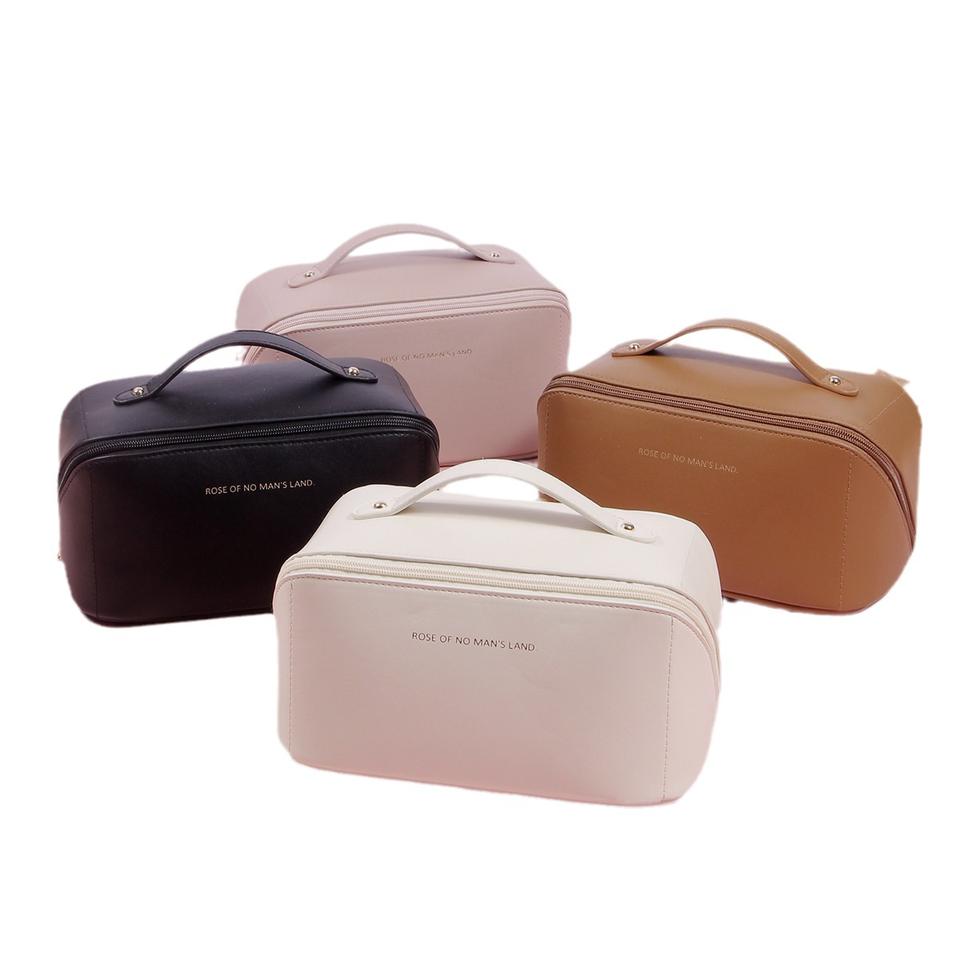 Sac à cosmétiques imperméable en cuir PU de couleur unie à fermeture éclair transparente pour femmes Berger, grande capacité moyenne