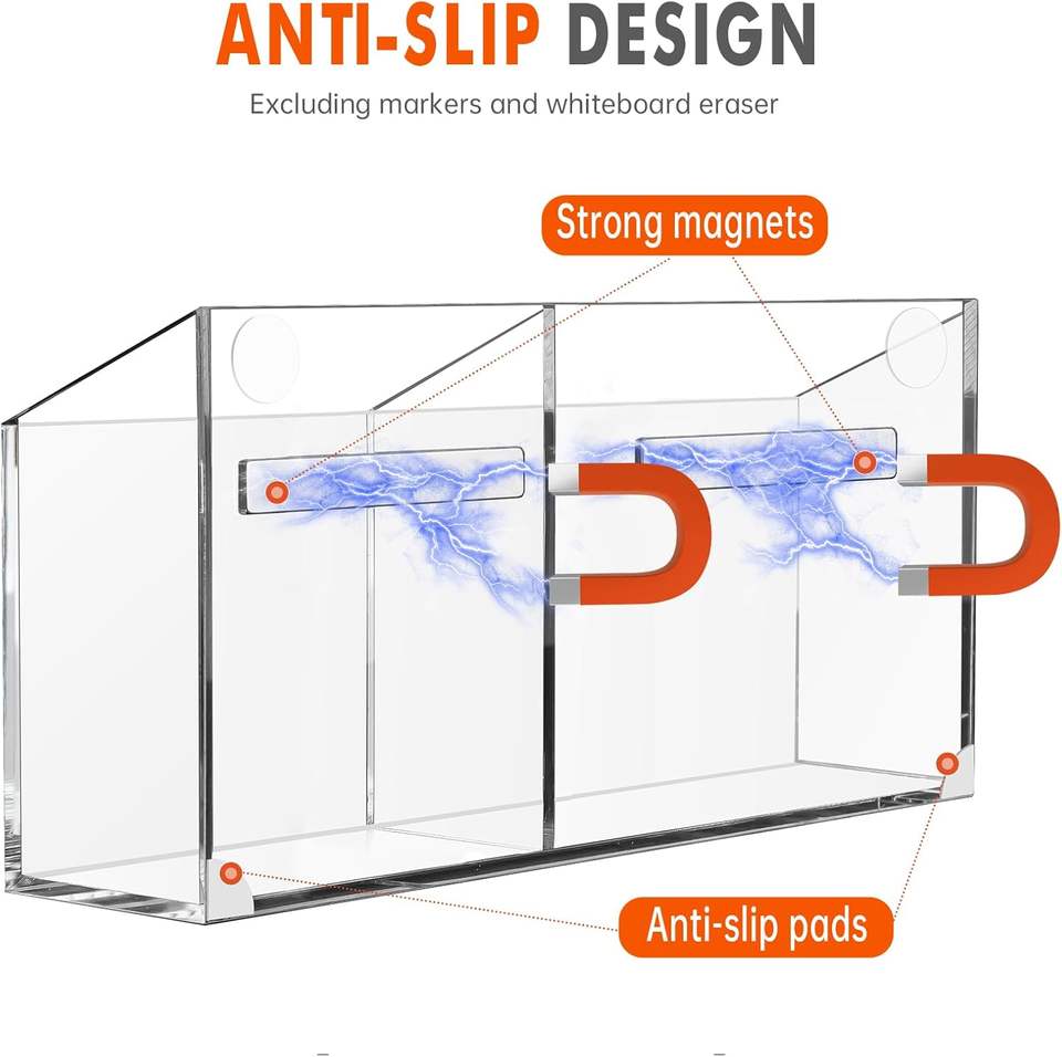 Nom du produit:Porte-marqueurs magnétique en acrylique à 2 emplacements pour tableau blanc effaçable à sec