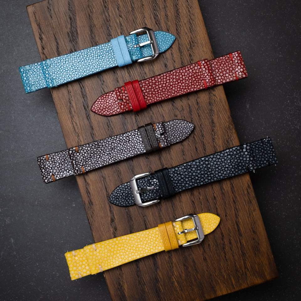 Bracelet de montre en cuir de raie personnalisé avec logo sur mesure – Qualité artisanale professionnelle, fabrication export, vente en gros en vrac