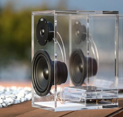bespoke DIY creative clear acrylic mini speaker box lucite speaker display stand holder