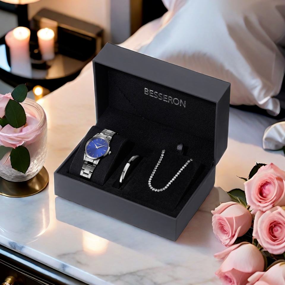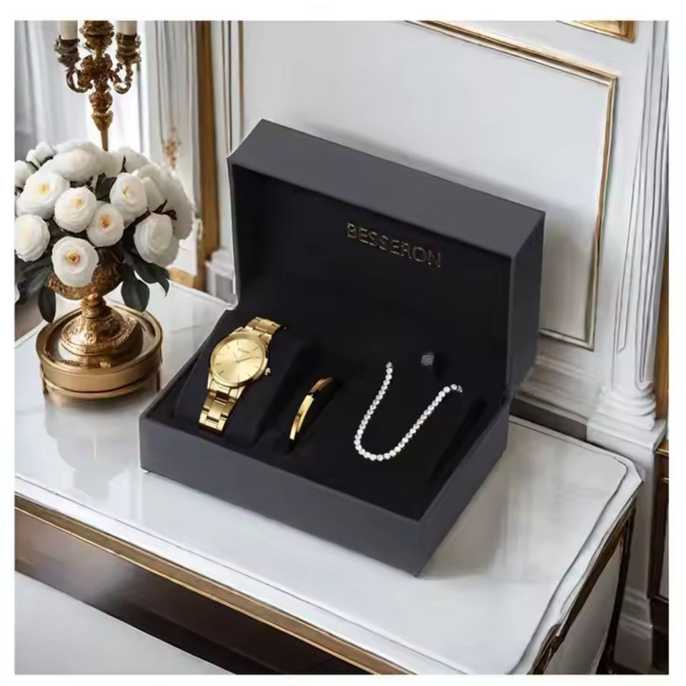 Besseron Meilleure vente au détail 3pcs Lady Luxury Wristwatch Jewelry Sets Stainless Steel Watch and Bracelet Gift Set for Women