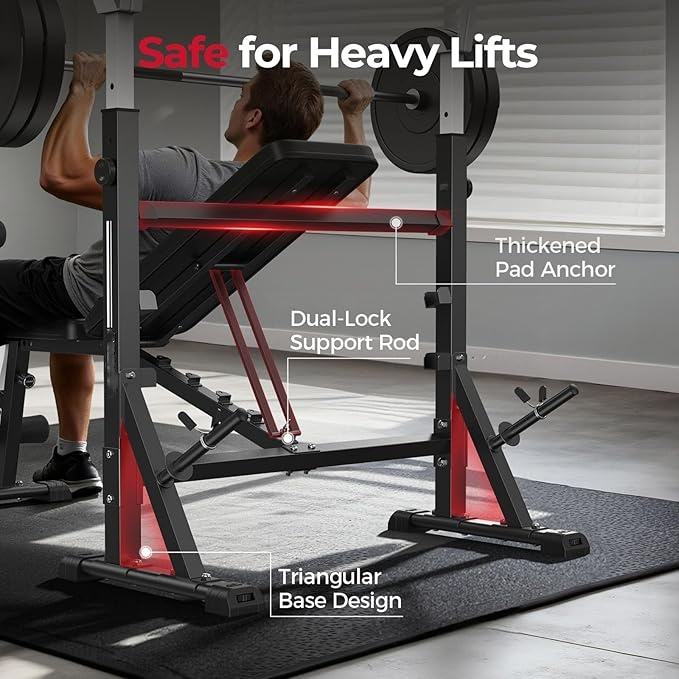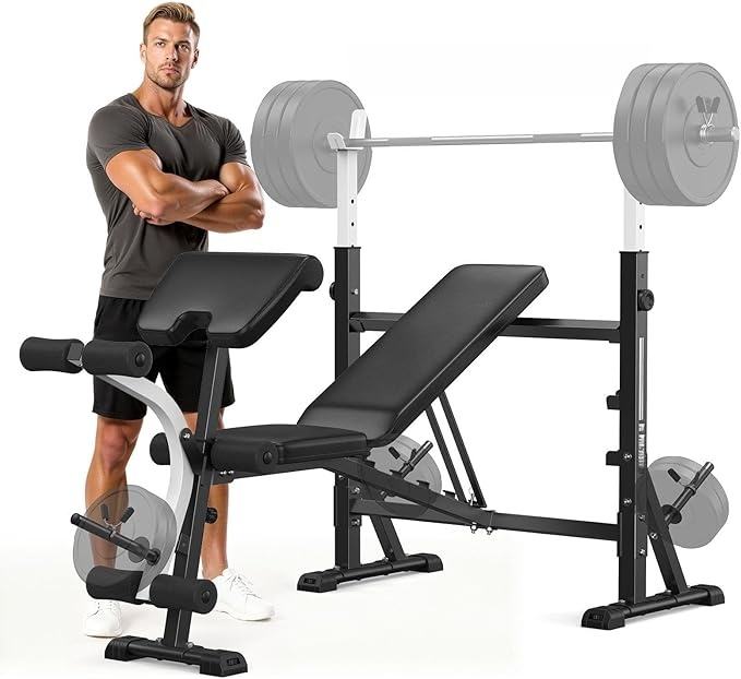 Besster Adjustable Weight Bench with Bench Press Rack Leg Extension and Leg Curl for Home Gym Workout (2 Size Options)