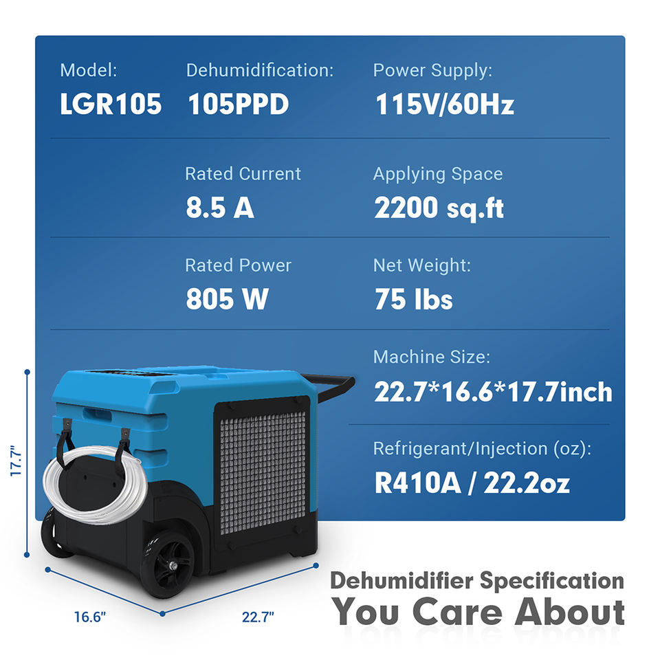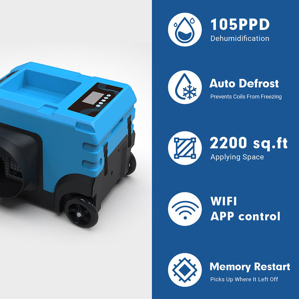 Meilleur déshumidificateur commercial 105 pintes pour équipement de dégâts d'eau avec tuyau pour sous-sols dans les maisons et les chantiers