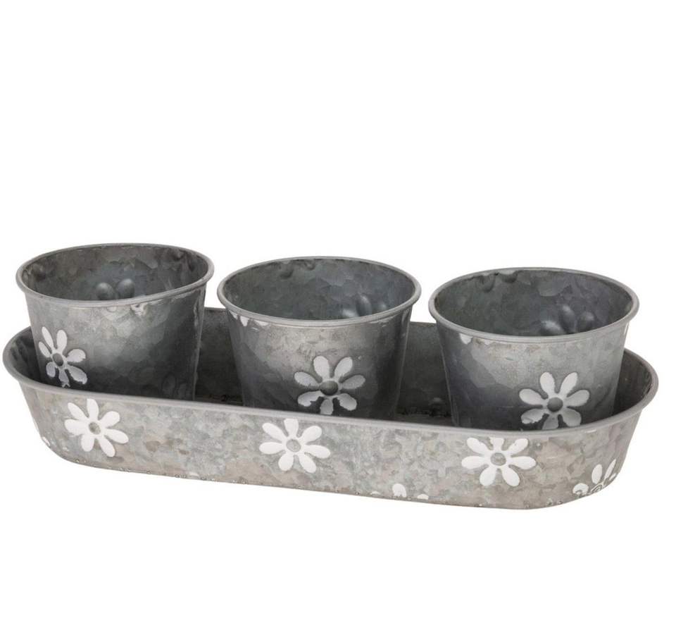 Best Arrival Rustic Galvanized Metal Flower Pots Set with Tray for Indoor Outdoor Garden Decor Customized Size Shape