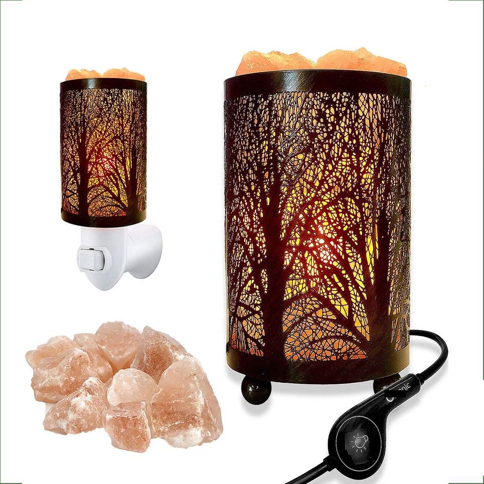 Meilleure lampe à sel en fer noir avec boîte à lumière en cristal et morceaux de sel-Sian Enterprises