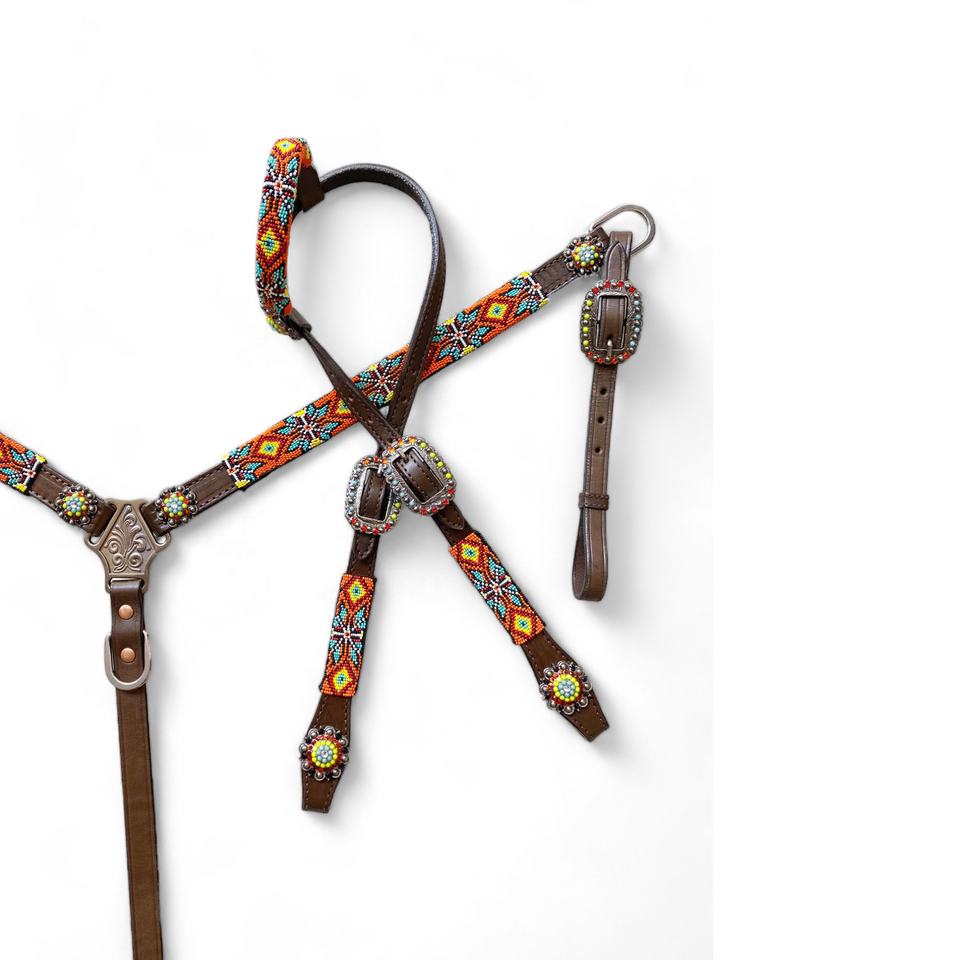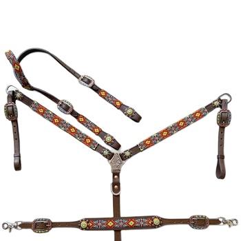 Western Horse Headstall & Breastplate With Wither Strap Set