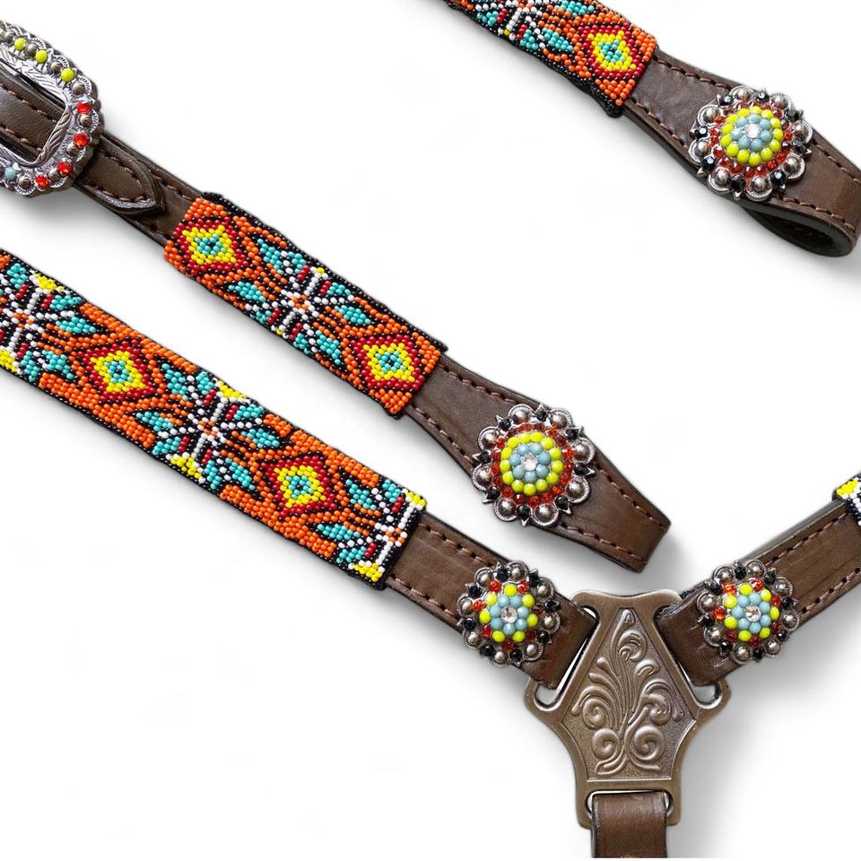 Meilleur achat Ensemble équestre Conception entièrement perlée Western Horse Plastron Attacher Wither Strap Headstall Accrocheur Coloré Course