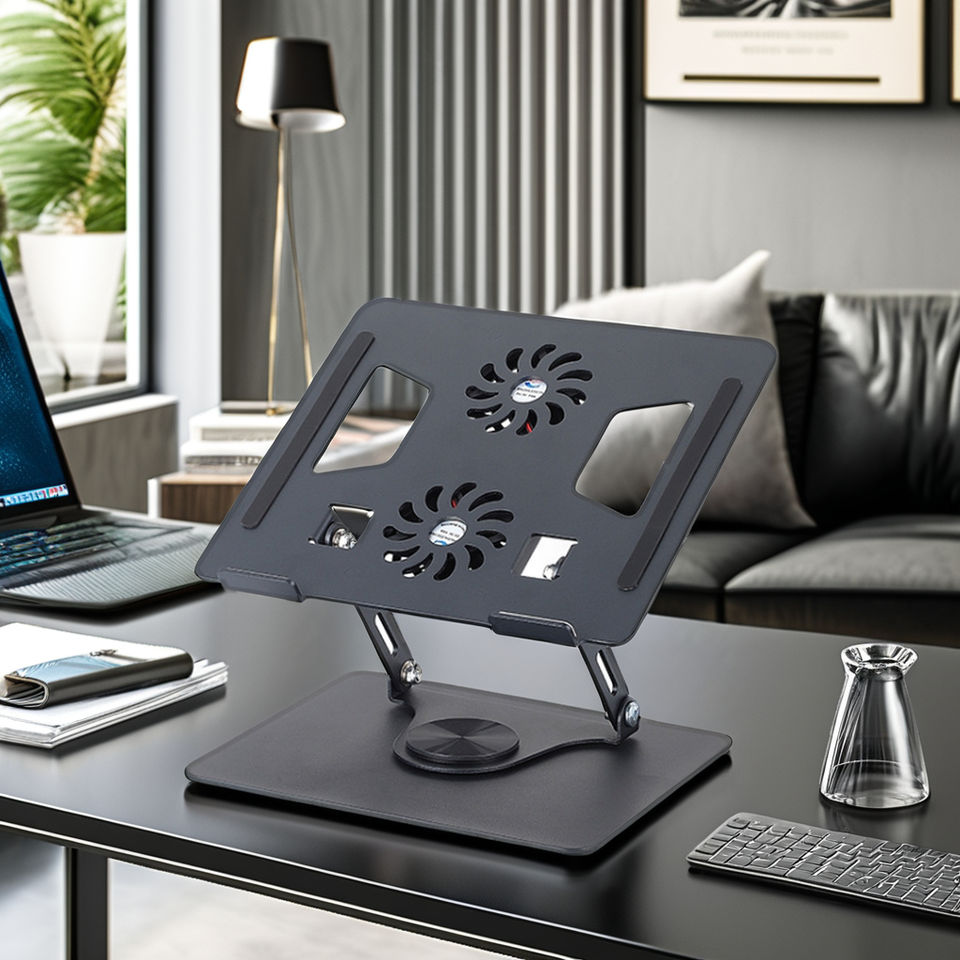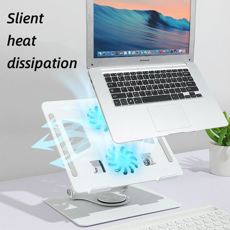 Meilleur Support Rotatif 360 Pas Cher pour Tablette PC, Pliable en Alliage d'Aluminium, Réglable avec 2 Ventilateurs de Refroidissement