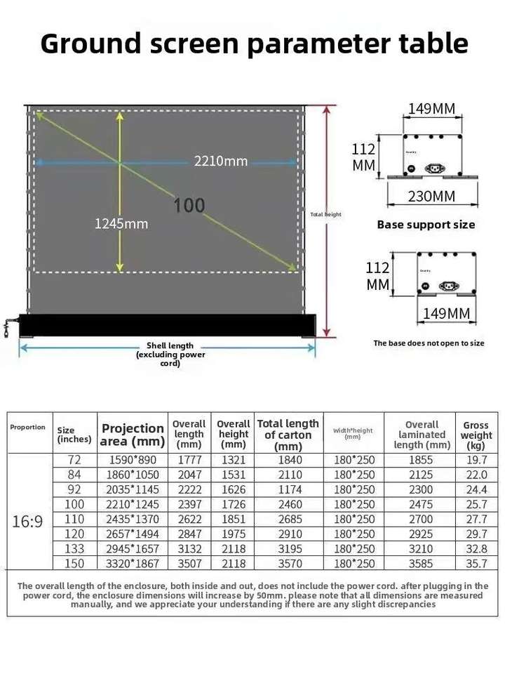 Meilleur écran de projection motorisé chinois CBSP Crystal UST ALR, format 16:9, écran sur pied