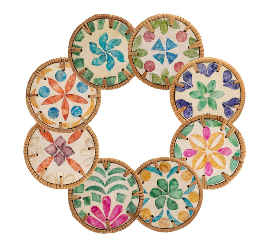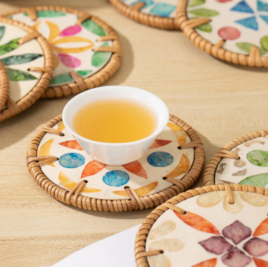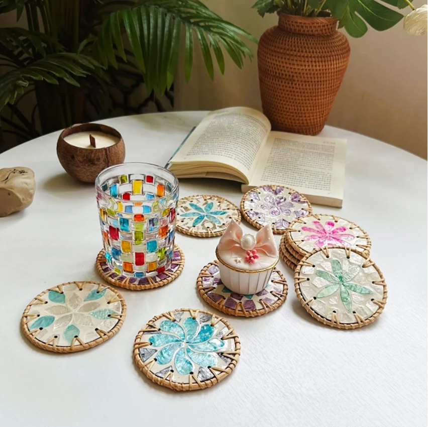 Ensemble de dessous-de-verre en rotin de premier choix avec incrustation de nacre, dessous-de-verre naturels faits à la main pour tasses à café et table à manger