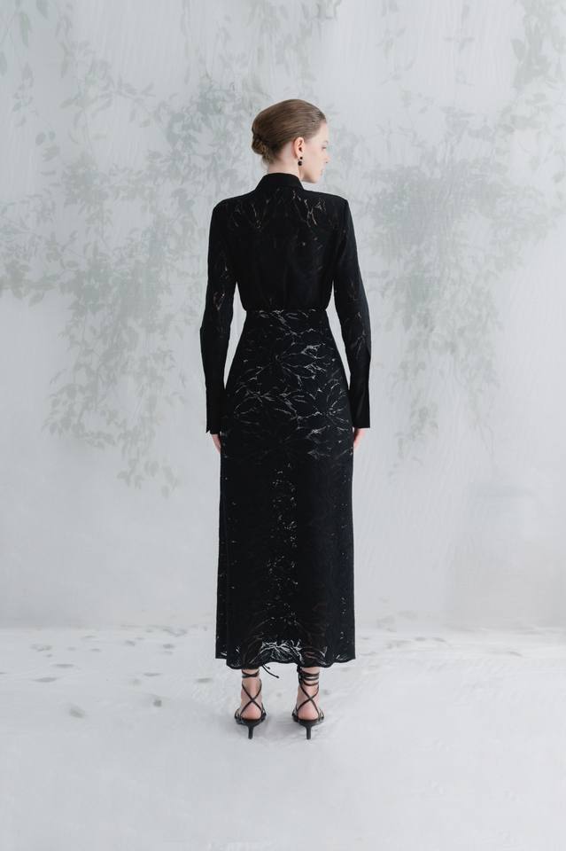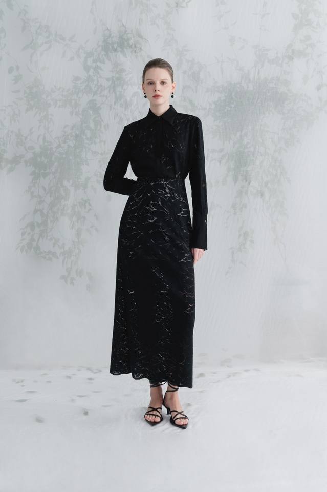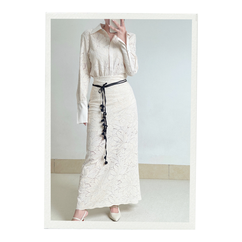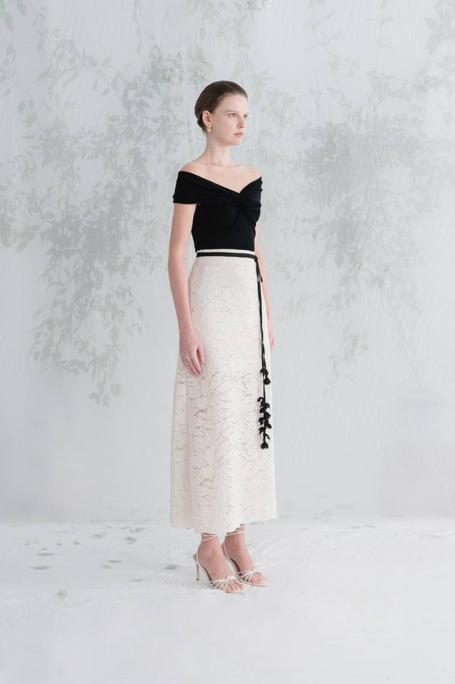Meilleur choix Femmes A-ligne JENA Midi Jupe Noir-Beige avec Personnalisé Blanc ANT Vietnam Label Fleur Dentelle Tissu Long Style