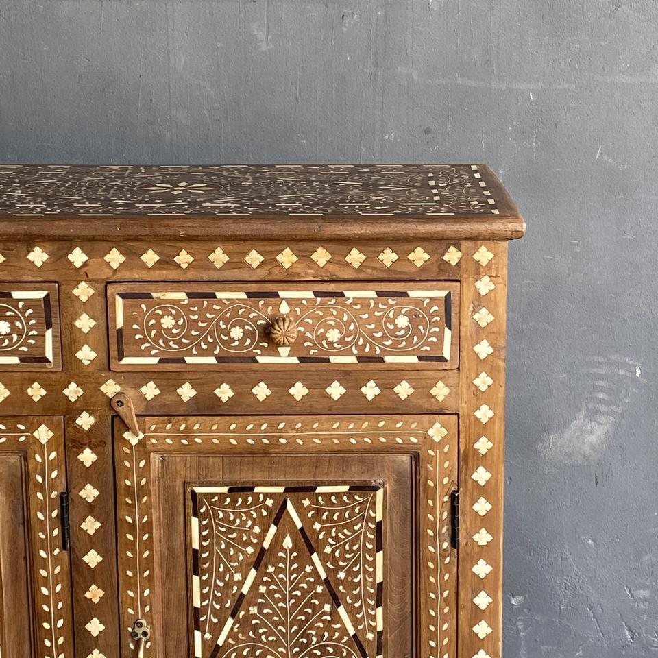 Meilleure Collection : Buffet Floral à 3 Tiroirs avec Incrustations en Os, Art Antique de l'Himalaya