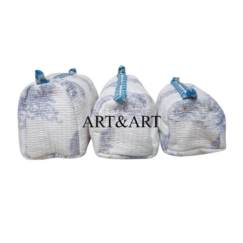 Meilleure collection de trousses de toilette matelassées à fermeture éclair et pompon écologiques, ensemble de trois trousses de maquillage de voyage en coton imprimé floral élégant