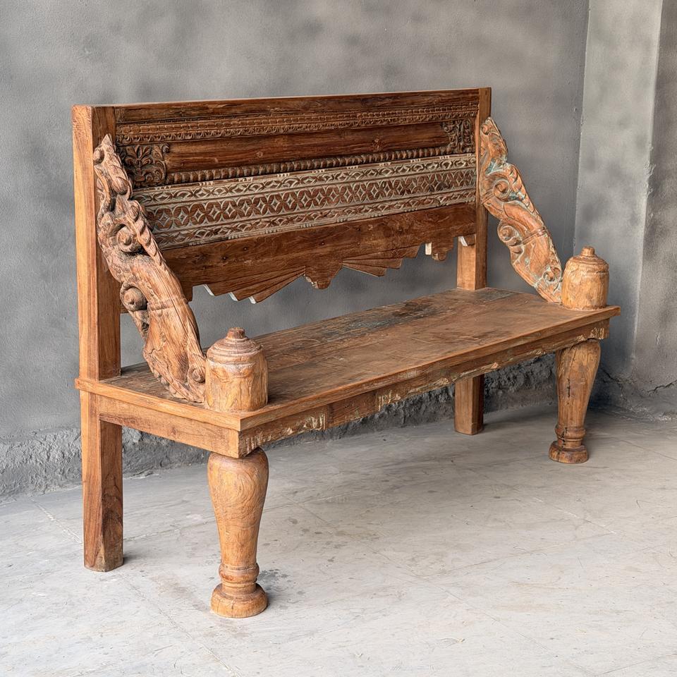 Meilleure collection de bancs sculptés à la main en bois massif, art himalayen antique
