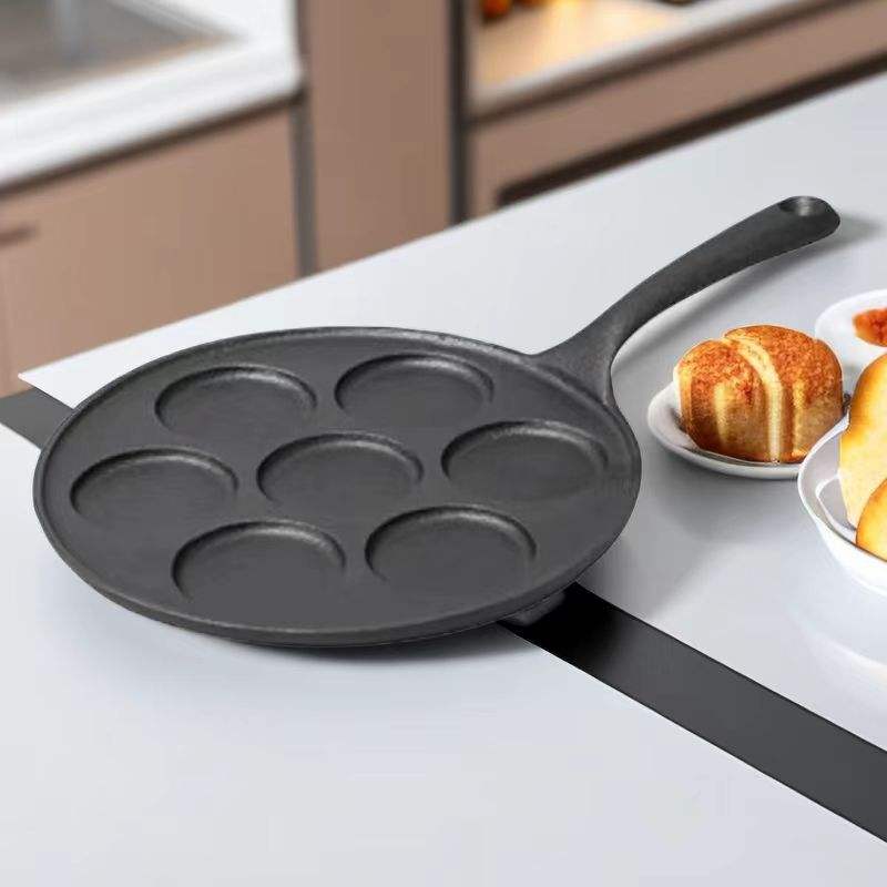 Meilleur ustensile de cuisine Poêle à crêpes en fonte 7 trous plats Poêle à blinis Mini poêle antiadhésive Crêpière