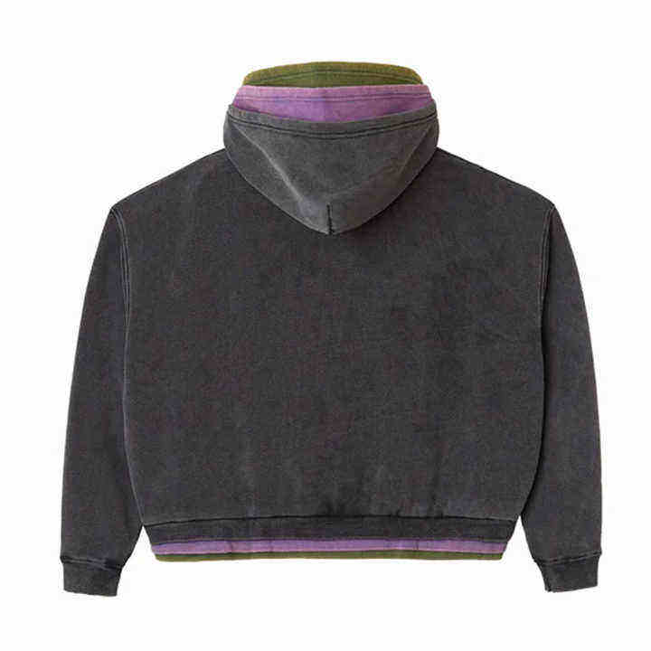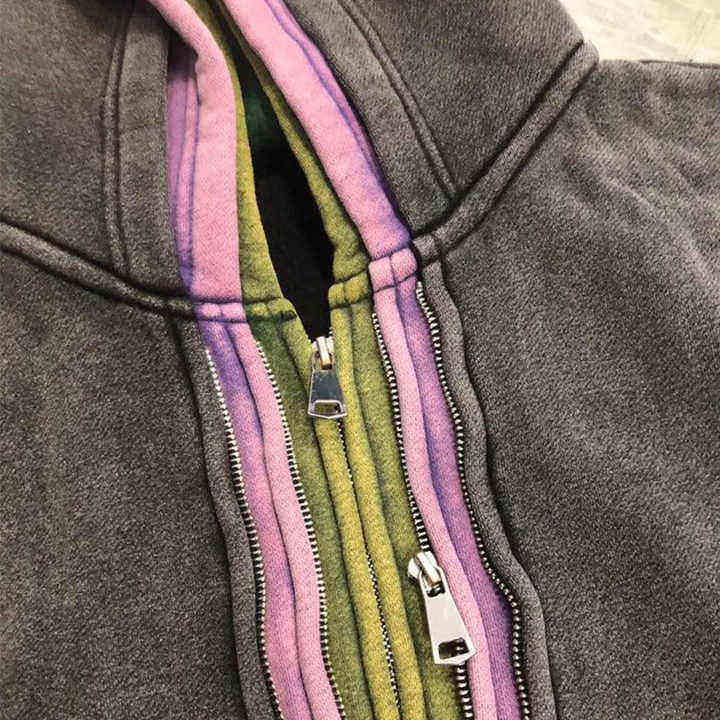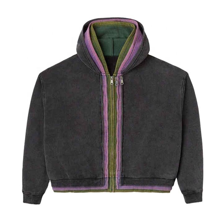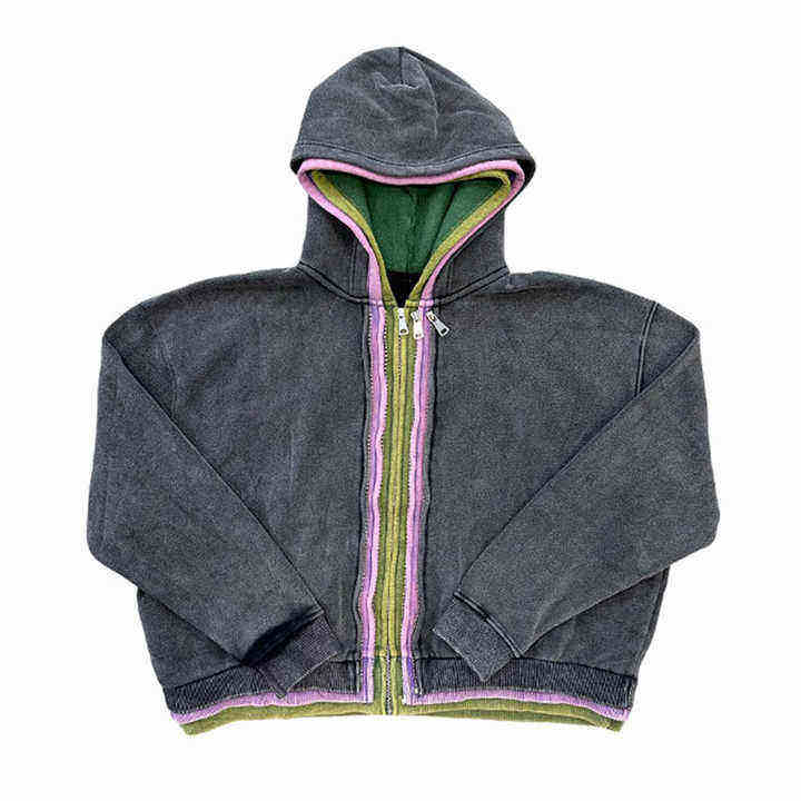Meilleur sweat à capuche triple couche zippé pour homme, coupe courte, nouveau design délavé à l'acide, idéal pour l'hiver, en coton respirant