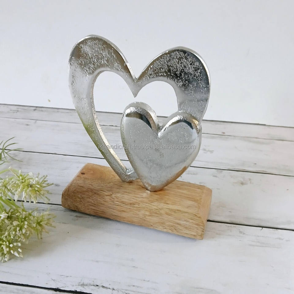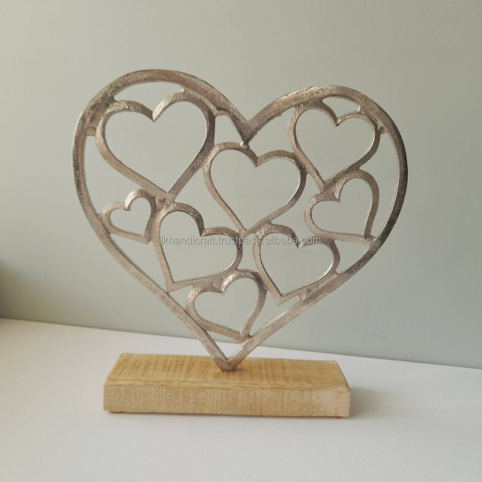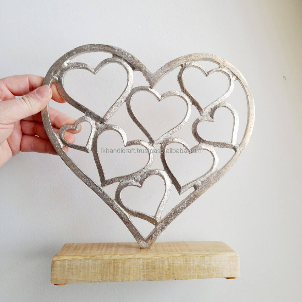 Best Customised Multi-Heart Metal Ornament Rustic Wooden Base for Valentine's Day Heart Decoration Chic Home Decorative Objects
