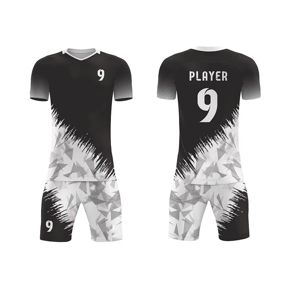 Ensemble de maillot de football pour hommes à manches courtes, personnalisé avec logo, séchage rapide, respirant, en polyester/coton, motif uni