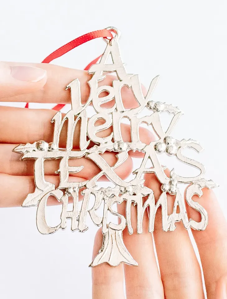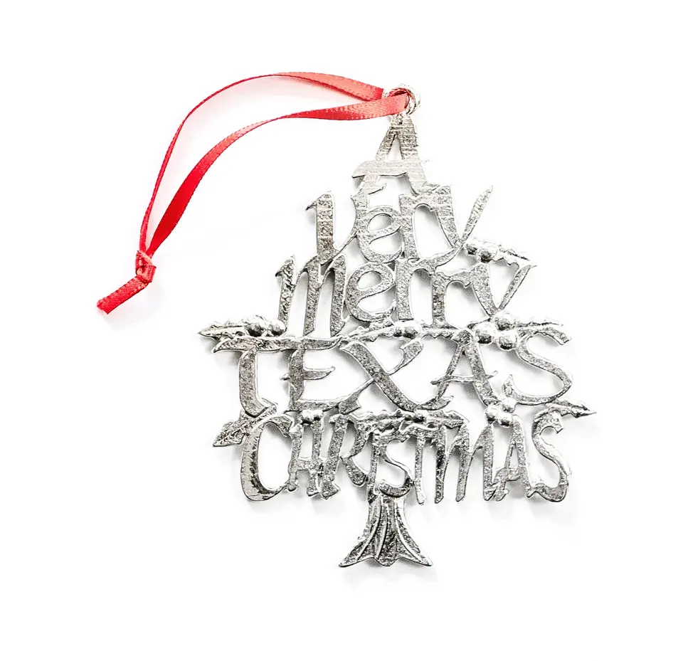 Meilleur nom personnalisé métal Texas noël suspendus ornements décor de noël en plastique boules de noël père noël