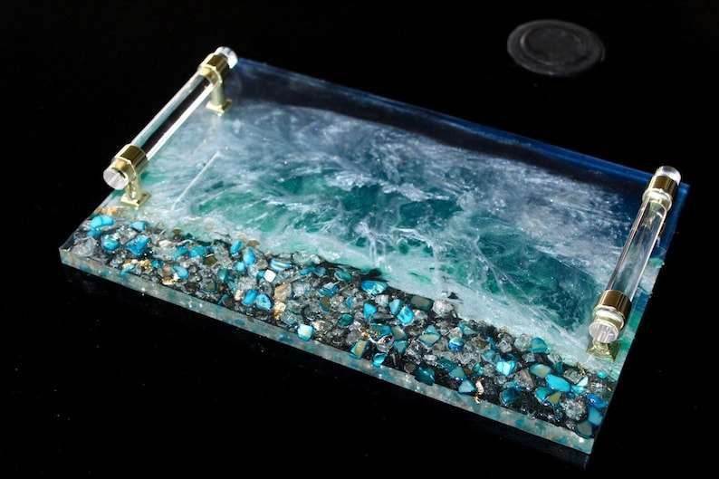 Boîte à bijoux en résine époxy de style classique, idéale pour la salle de bain, pliable et portable