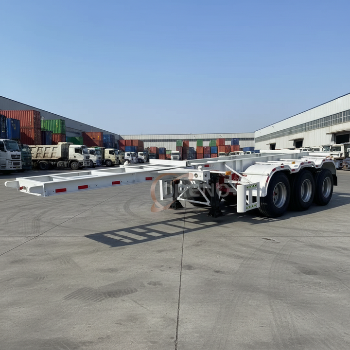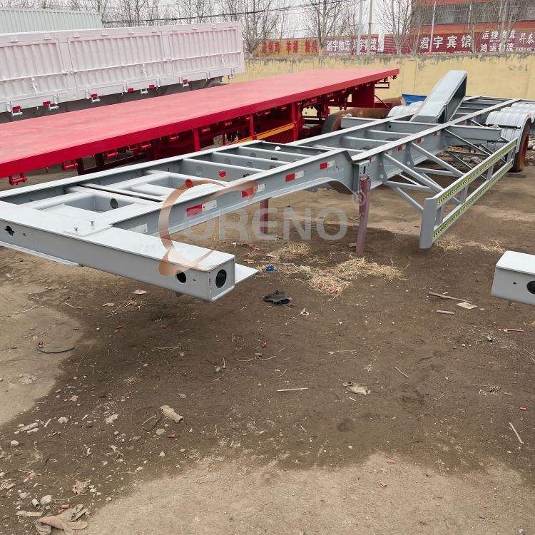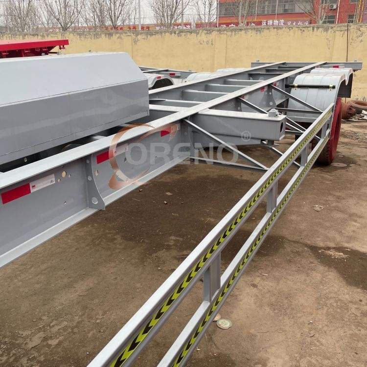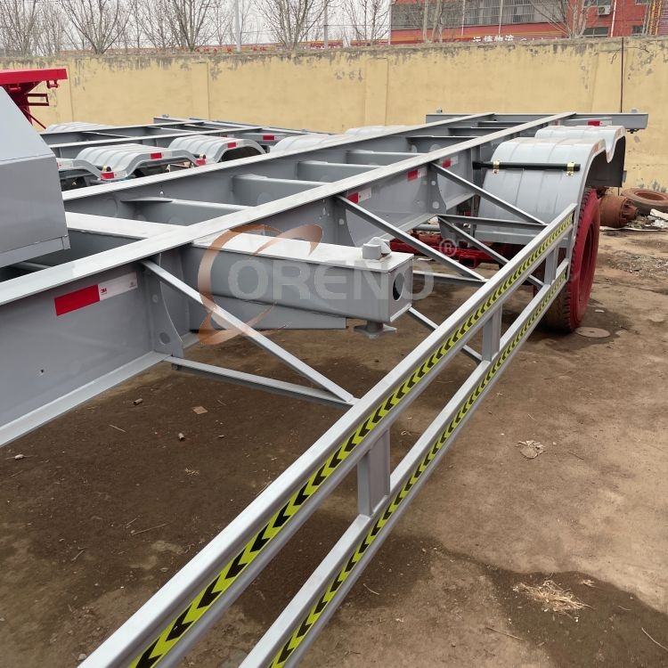 Semi-remorque à squelette en acier de 40 pieds et 45 pieds, 3 essieux, charge utile maximale de 50 tonnes, système de freinage à double ligne, camion porte-conteneurs, meilleur design