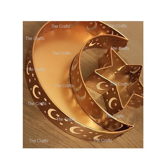Plateau Ramadan en métal couleur cuivre Plateau en forme de lune et d'étoile de la meilleure qualité pour la maison, les hôtels et les restaurants