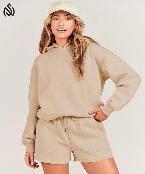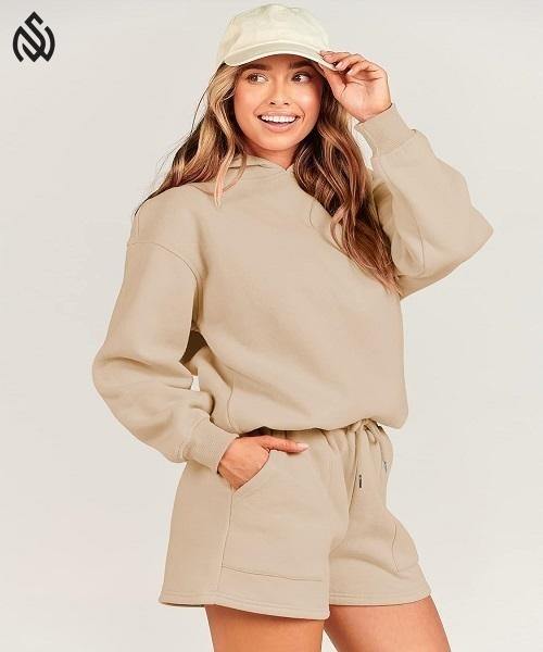 Ensemble de sweats à capuche et short pour femmes de la meilleure conception avec logo personnalisé fabriqué au Pakistan Ensemble de haute qualité en polaire pour femmes en plein air et hiver