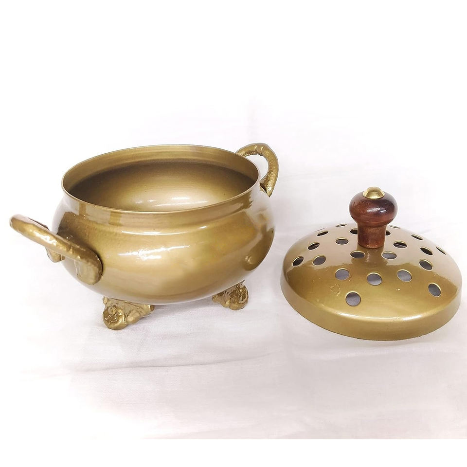 Meilleur design de bonne qualité Brûleur d'encens de forme ronde à revêtement d'or de taille personnalisée avec poignée latérale Produit unique Utilisation à domicile