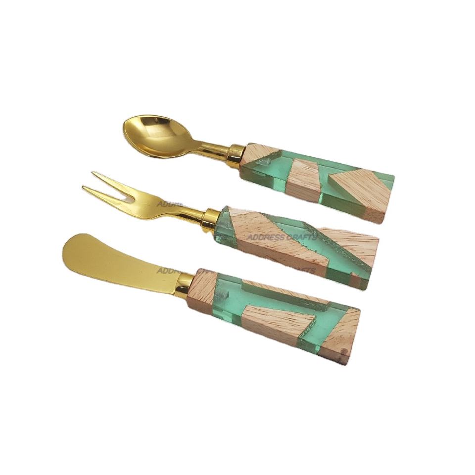 Meilleur design de couverts indiens faits à la main en acier inoxydable avec résine et manche en bois Vaisselle de table de qualité supérieure