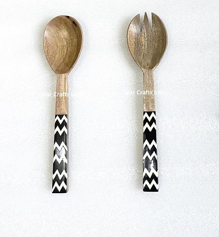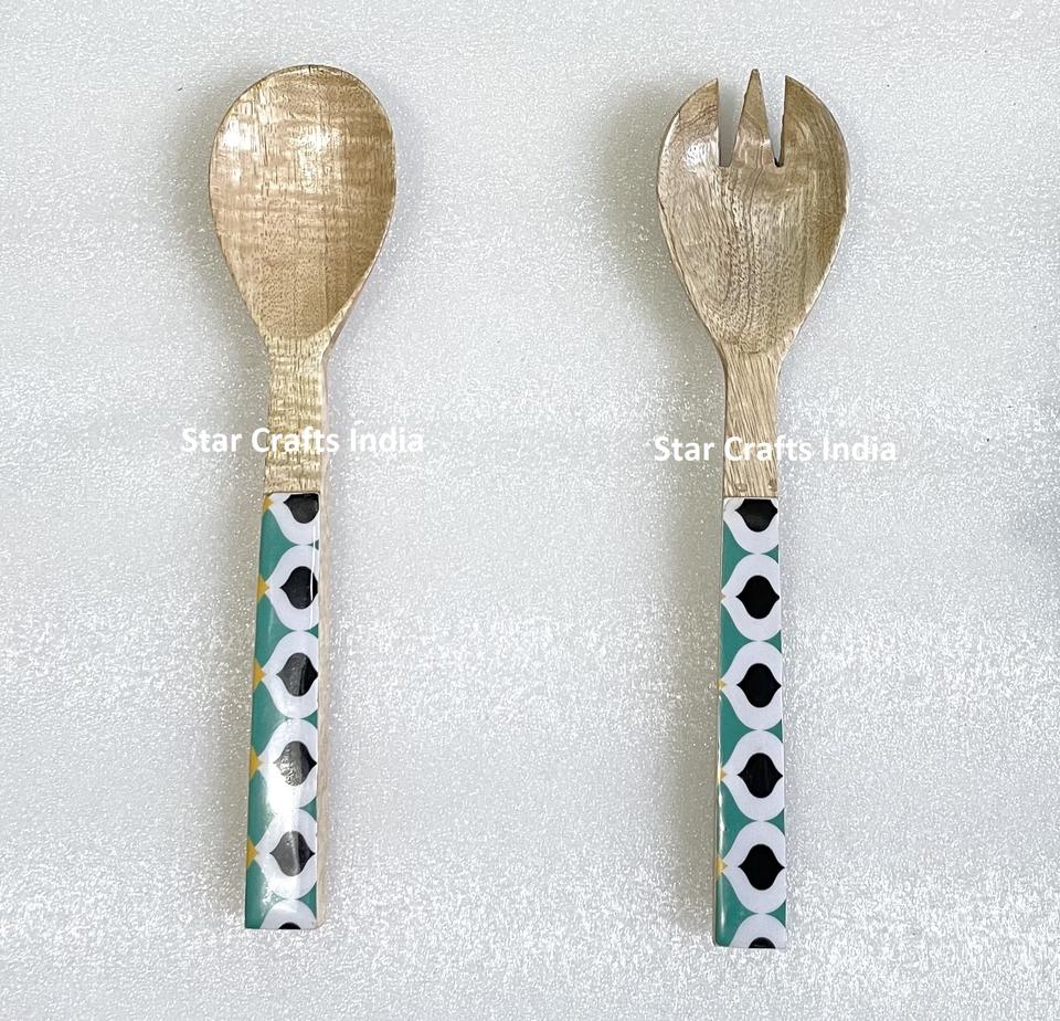 Meilleur Design SCI Trendy Qualité Artisanat Serveur à Salade Vente en Gros Bois avec Poignée Imprimée Émaillée Dernier Design Ensemble de Serveur à Salade