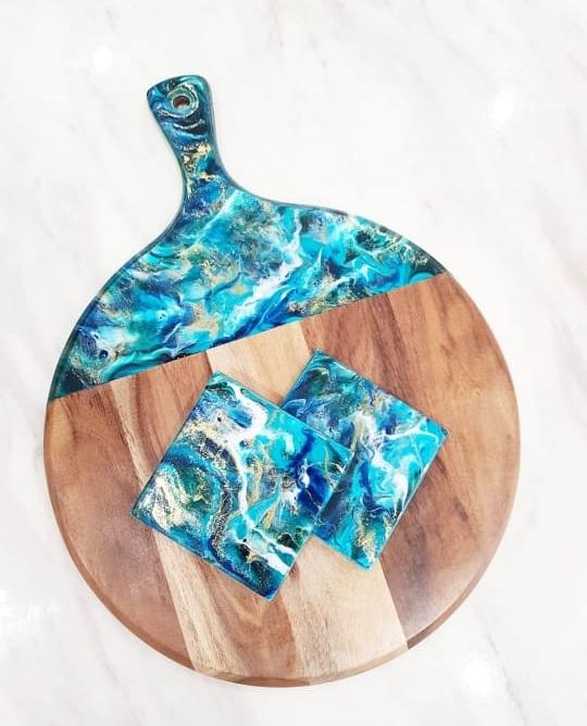 Description:Acacia Wood & Epoxy Resin Serving Board
