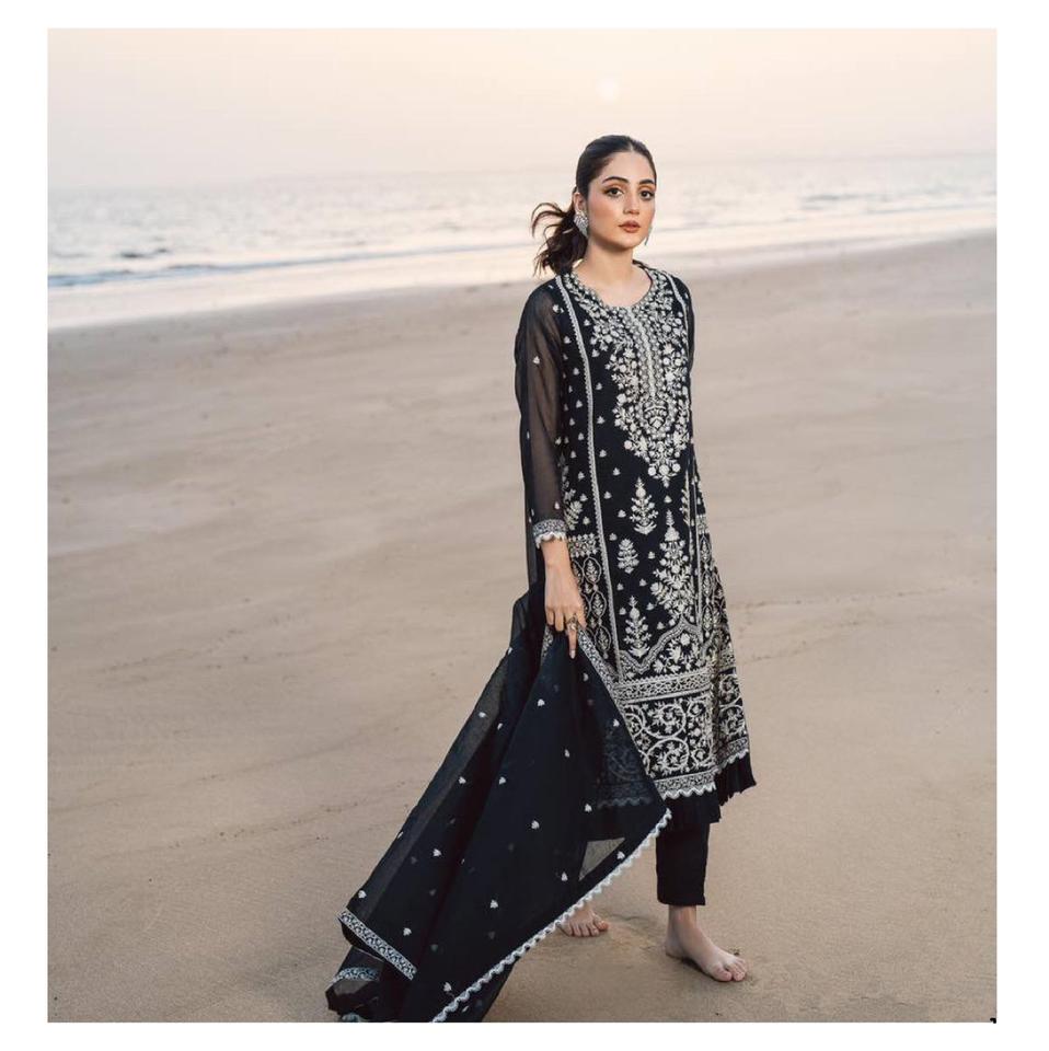 Meilleur ensemble de designer en faux georgette avec broderie de sequins, pantalon et dupatta assortis, tenue de fête ethnique traditionnelle, séchage rapide