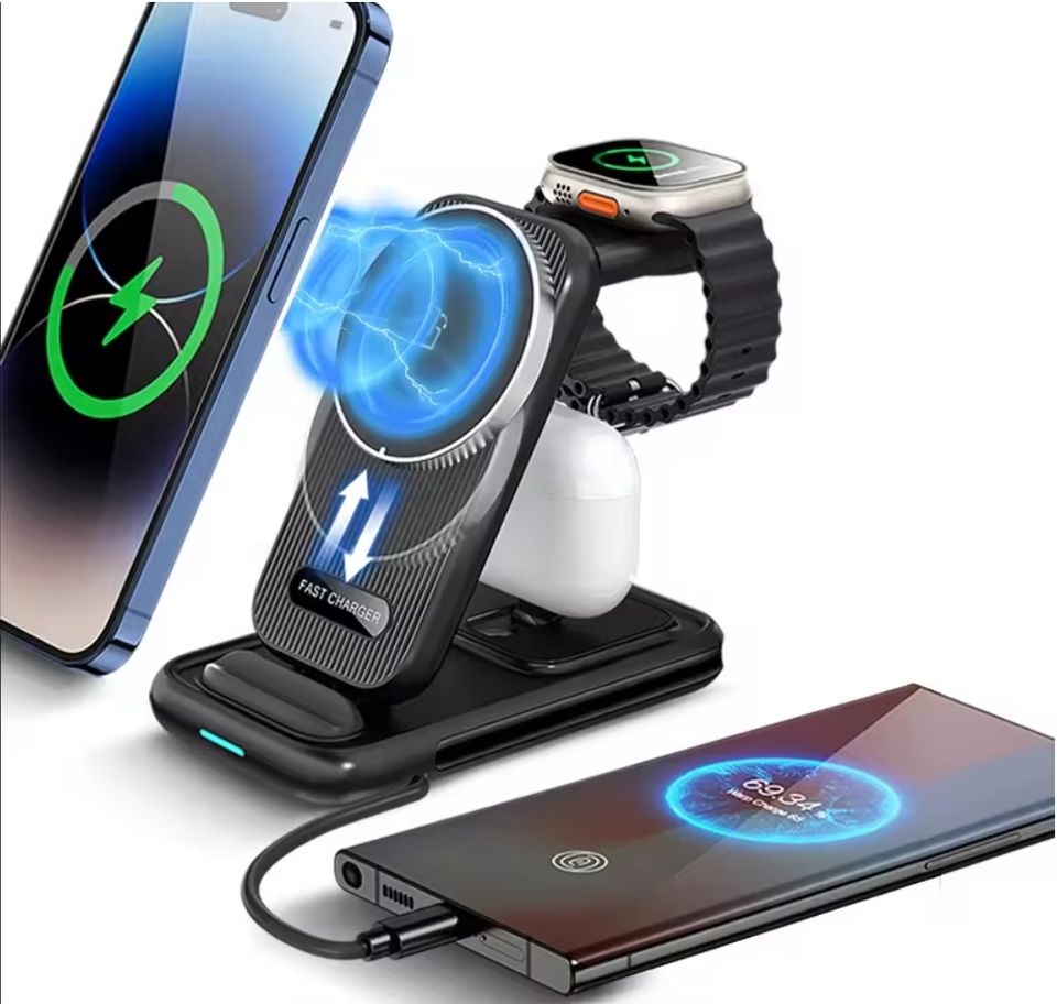 Meilleur chargeur sans fil rapide 15W à double bobine 3 en 1 pour AirPods Samsung pour Apple Watch Phone