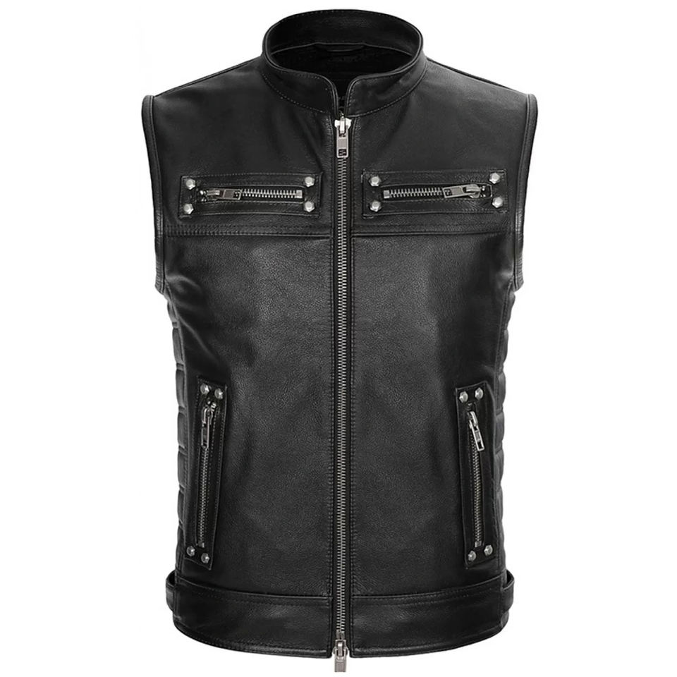 Meilleur prix d'usine sur la tendance gilet en cuir noir pour hommes pour l'hiver décontracté grande taille avec fonction imperméable moto course