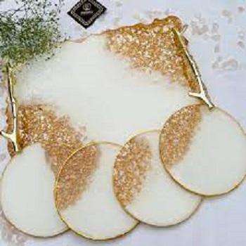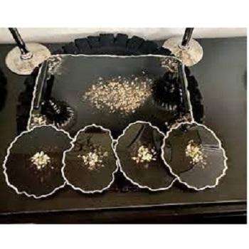 Plateau de service en résine solide fait à la main de qualité supérieure avec poignées faciles à saisir et conception de base plate pour la cuisine et la table