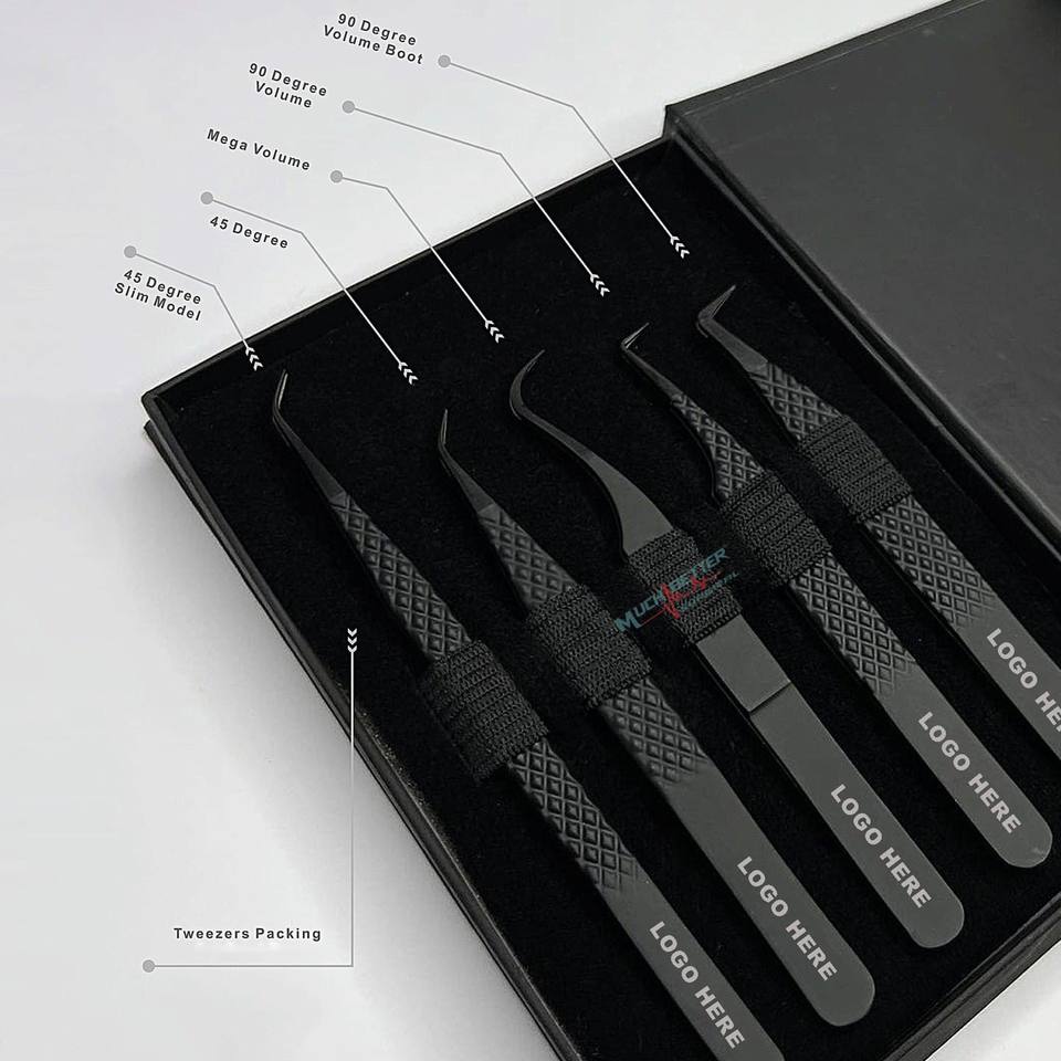 Best Grip Fiber Tip Eyelash Tweezers 45 75 90 gold black Degree Stainless Steel Tweezers Private Label Lash Extension Tweezers