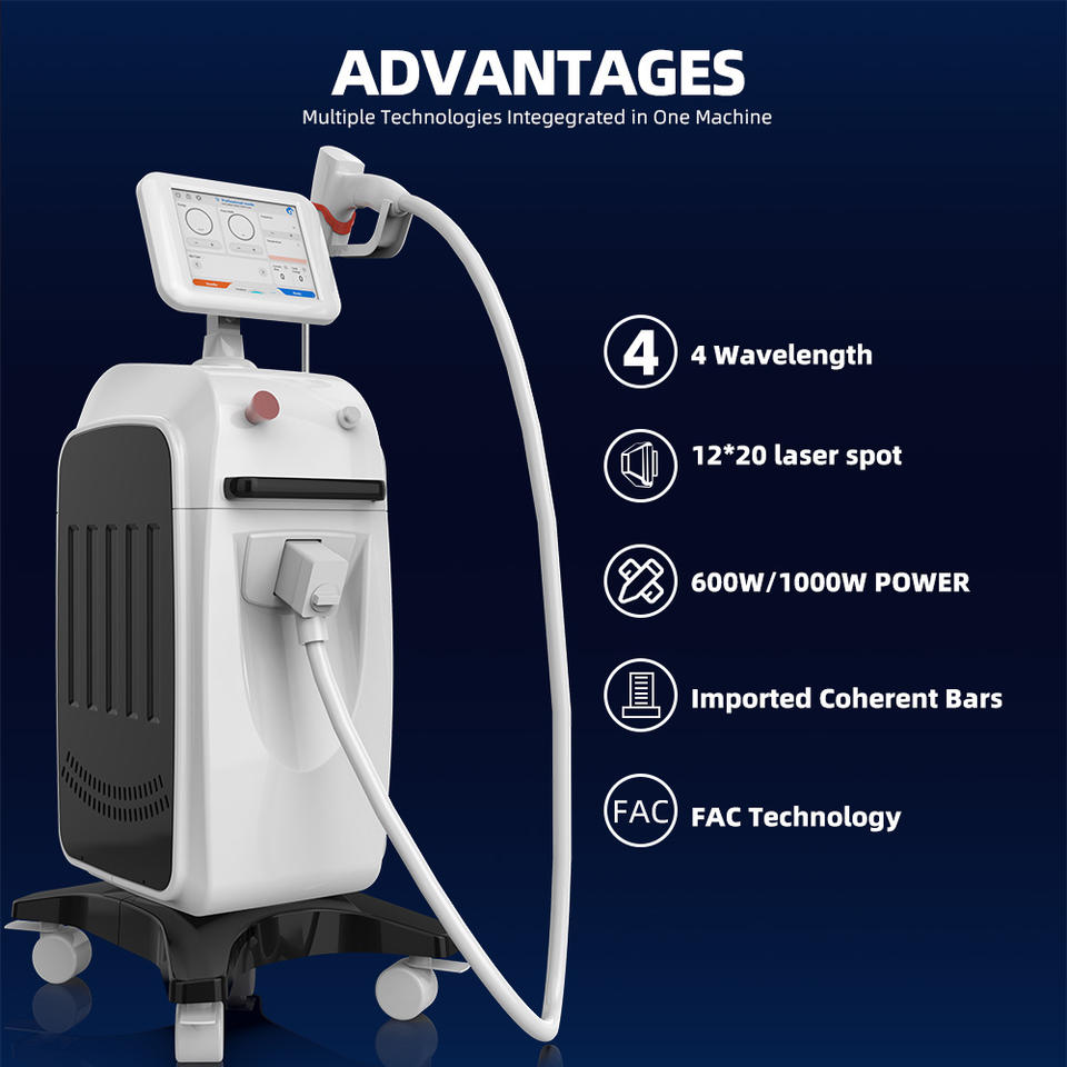 Meilleur laser diode d'épilation 755/808/1064nm 1000W, machine d'épilation au titane avec refroidissement par eau/air pour une épilation permanente