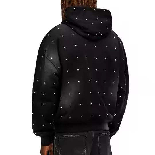 Best High Quality Wholesale Factory Custom Rhinestone Embroidered Winter Men Hoodies Fleece Full Zip up Custom Logo Streetwear