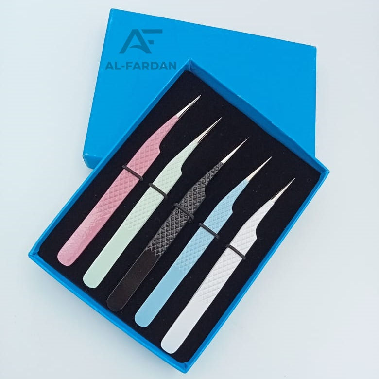 Pince à épiler droite en acier inoxydable avec poignée en diamant enduit de meilleure couleur personnalisée d'isolation 5 pièces par carte pointue