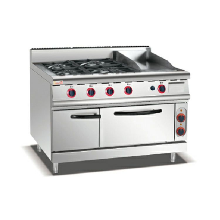 Meilleures solutions de cuisine : équipement de cuisine combiné, cuisinière à gaz 4 brûleurs avec four de boulangerie, cuisinière à gaz en acier inoxydable avec plaque de cuisson