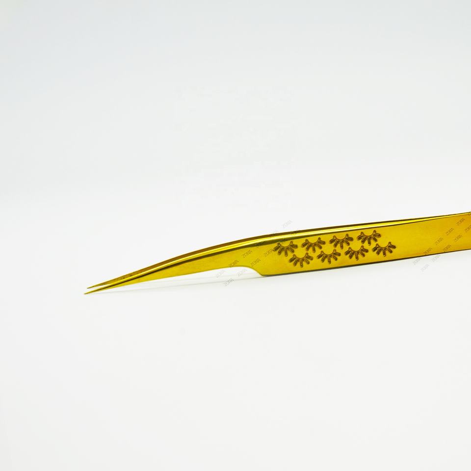 Pince à épiler avec poignée imprimée pour cils, enduit de plasma doré