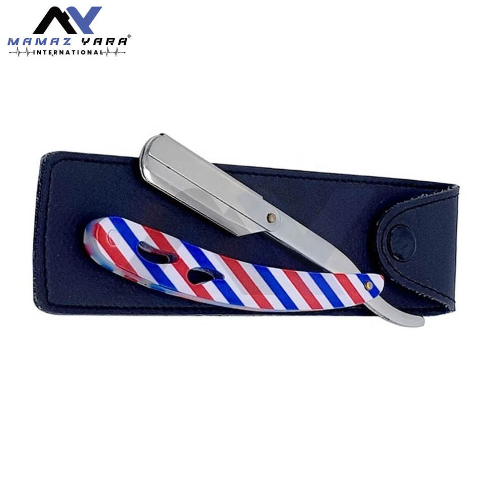 Meilleurs rasoirs de barbier avec étui en cuir, système de verrouillage à bascule, logo personnalisé, marque OEM, rasoirs à bascule pour barbier, motif USA