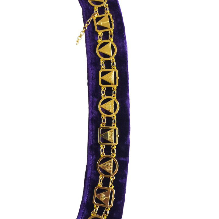 Collier maçonnique violet en matériau de qualité supérieure, sur mesure, plaqué or, avec étui