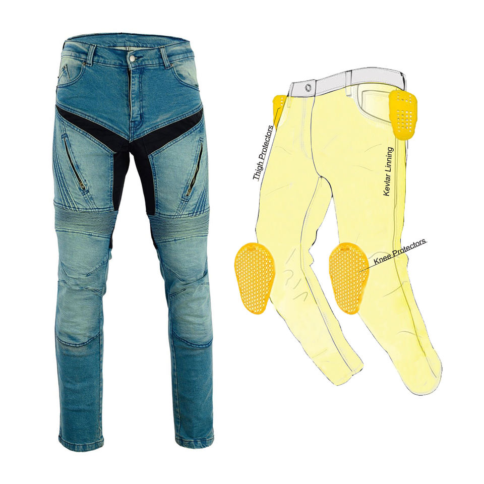 Meilleurs vêtements de sport délavés pour hommes AA Rated Slim Blue Motorbike Jeans Pants Aramid Doublure Prime Protection Respirant Plus Size