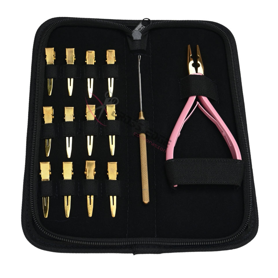 Mots-clés:Kit de pinces pour extensions capillaires avec pince à sertir pour nano-anneaux et pince de verrouillage pour perles.