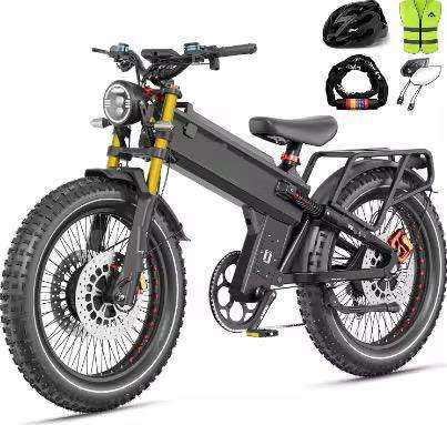 Meilleure Offre Nouveau A9 Pro Max Bike-E 60V 70Ah 5600W Double Moteur 45+ MPH Pneus Larges 26"x4.8" Vélo Tout-Terrain Autonomie 200 Miles 7 Vitesses